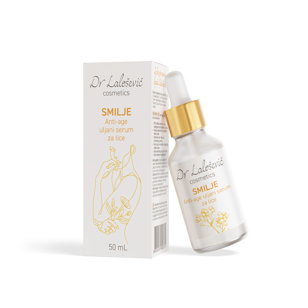 Dr Lalošević anti-age face oil serum with immortelle is formulated with a macerate of organically grown immortelle flowers, enriched with immortelle essential oil, to deeply nourish, hydrate and regenerate the skin. The serum visibly reduces wrinkles, fine lines and skin imperfections, improves skin texture and restores a youthful, fresh and radiant appearance. It is suitable for all skin types, especially dry, mature and tired skin.